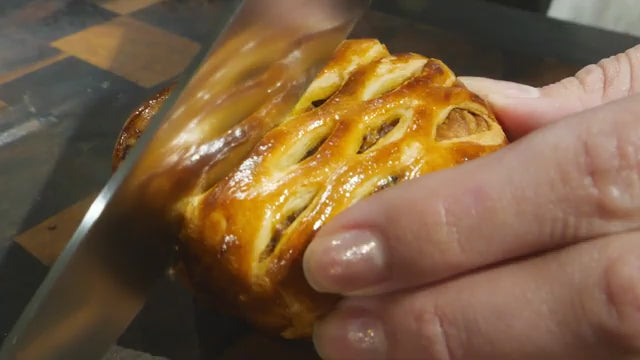 野菜と一緒に長時間煮込んで溶け込んだ自然な甘みと旨みが詰まったボロネーゼに黒トリュフを合わせ一度加熱することで、華やかな風味が口いっぱいに広がる濃厚な黒トリュフボロネーゼに仕上げています。 もっとも美味しく食べられる焼き立ての美味しさを閉じ込める超冷凍技術で、サックサクの最高のミートパイをお届けします。