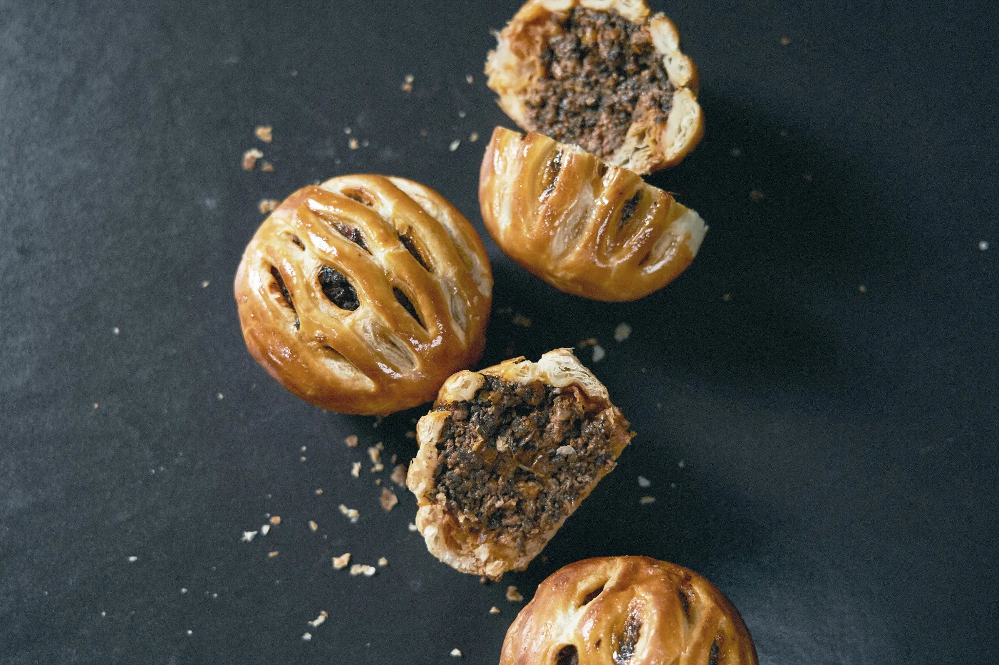 野菜と一緒に長時間煮込んで溶け込んだ自然な甘みと旨みが詰まったボロネーゼに黒トリュフを合わせ一度加熱することで、華やかな風味が口いっぱいに広がる濃厚な黒トリュフボロネーゼに仕上げています。 もっとも美味しく食べられる焼き立ての美味しさを閉じ込める超冷凍技術で、サックサクの最高のミートパイをお届けします。